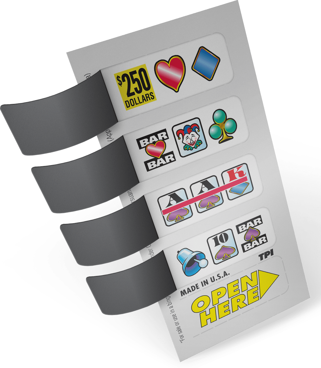 Available at most local bars and pubs . Take your night to the next level with the simple fun of pull tabs. Jackpot cherries · jackpot cherries ; If you're new to online games, you may be at a loss as to where to start — after all, there's no shortage of options to choose from. 3 and 5 window pull tabs, vfw pull tabs, and many other games in stock for immediate shipment.